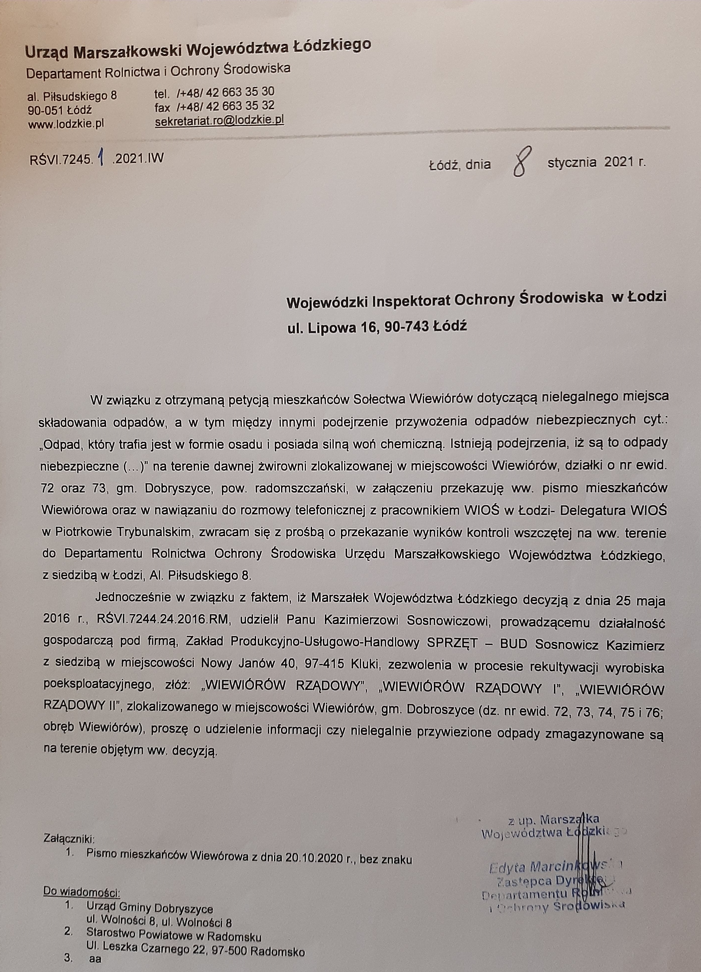 - Pismo z Łódzkiego Wojewódzkiego Inspektora Ochrony Środowiska (519 Pobrań)